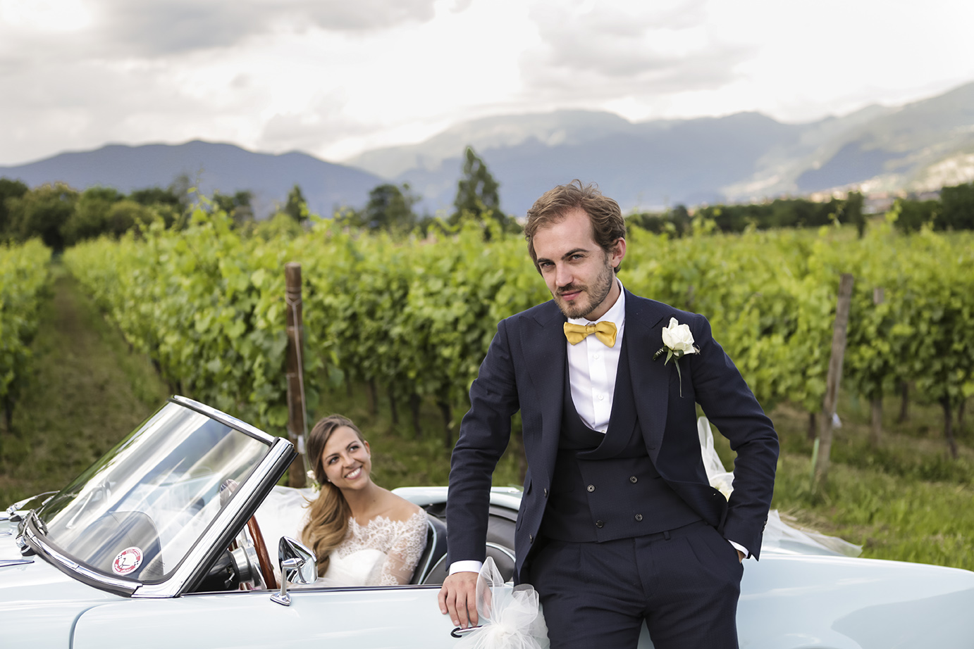 Couples Portrait Sessions at the sunset, with options like a boat, a pictoresque vineyard, or even in a classic Fiat 500.